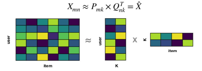 这里的潜在因子用 K 表示。这个重建的矩阵补充了原始用户-物品矩阵中的空白单元格,因此现在已经知道未知的评分了。