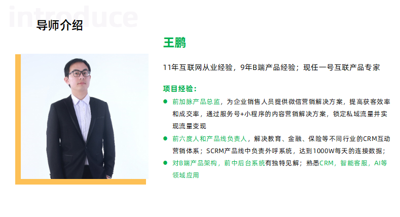 这是由起点课堂(原起点学院)出品的B端产品公开课,专为正在做B端产品同学,或者对B端产品感兴趣想要了解相关工作内容的同学打造,课程将由现任一号互联产品专家@王鹏老师直播授课。