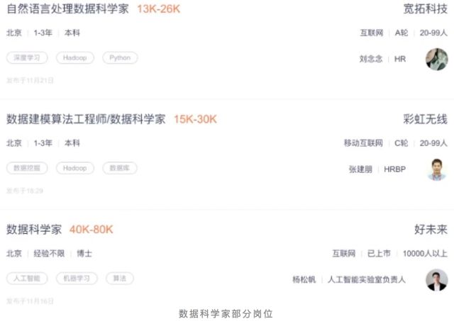 不同岗位的差距会直观地从薪资中反应出来,一般来说,数据分析师约40万人民币年薪,而数据科学家的年薪则以80万起步。这些只是平均数据,有些互联网企业为了吸引人才,甚至开出了百万乃至千万的年薪。