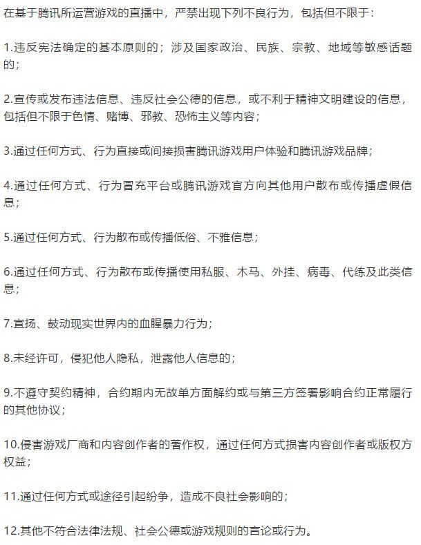 11.腾讯游戏发布直播行为规范公告,提出12条直播禁令