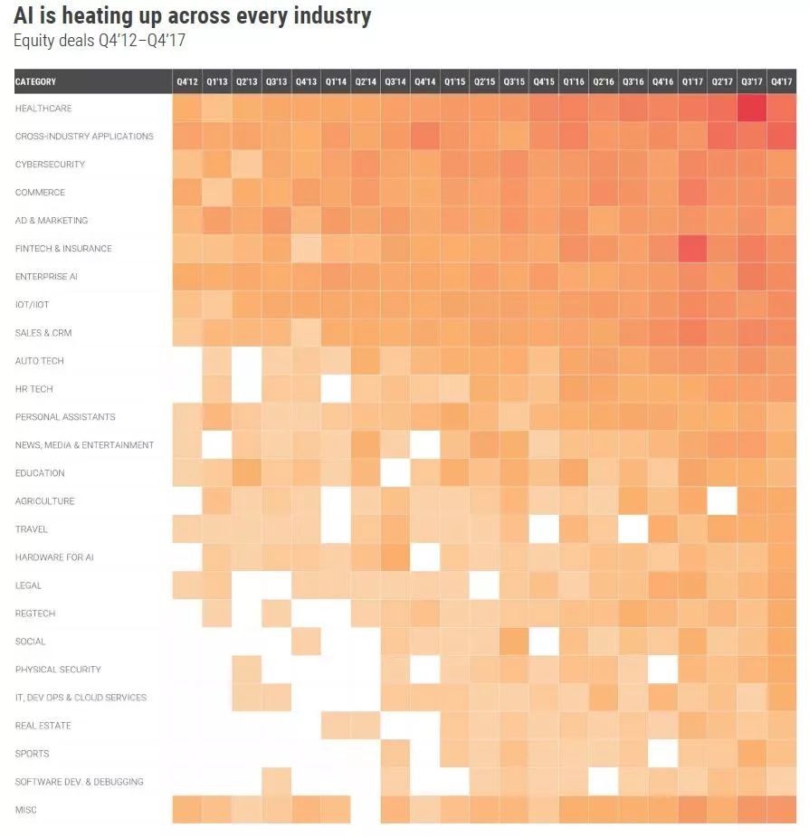 CB Insights指出,2018年,人工智能无处不在,或者更确切地说,机器学习将无处不在。这项技术几乎“无所不能”,并将在2018年创造出无限可能。