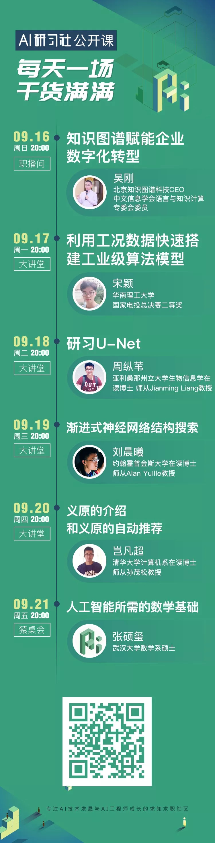 感谢各位开发者的支持,AI研习社大讲堂、猿桌会、职播间三个直播品牌逐渐走向正轨,直播内容也越来越丰富。随着社区的直播功能越来越受欢迎,不少企业及学术大咖也不断入驻社区,为社区用户带来最新的技术讲解和学术分享。从本周日至下周五,AI研习社每晚八点准时为社区用户带来一场高质量的直播分享活动,详细直播信息如下,需要看直播的同学可以提前安排时间。