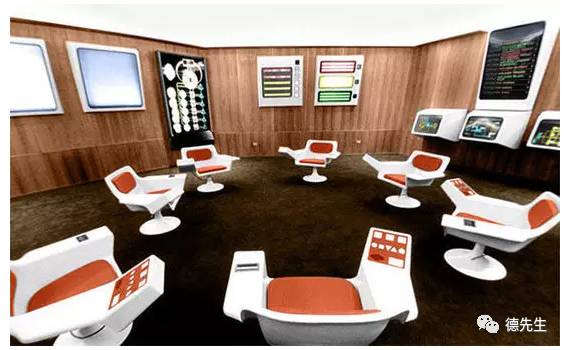 图注:智利阿连德总统的“赛博协同控制工程”指挥中心操作室还原图[17]