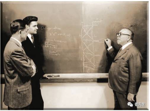 图注:黑板前的师生三代:李郁荣、博斯和维纳在MlT (同引自注15)[16]