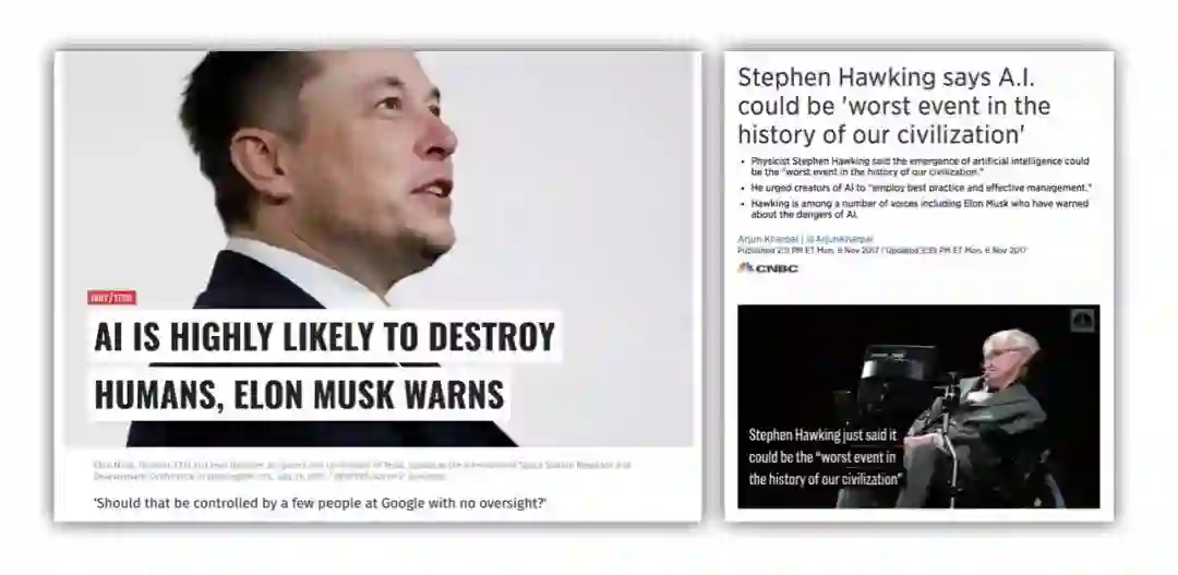 另一方面,既然AI现在的那么蠢,为什么马一龙 (Elon Musk) 却说“AI很有可能毁灭人类”;霍金甚至直接说 “AI可能是人类文明里最糟糕的事件”。