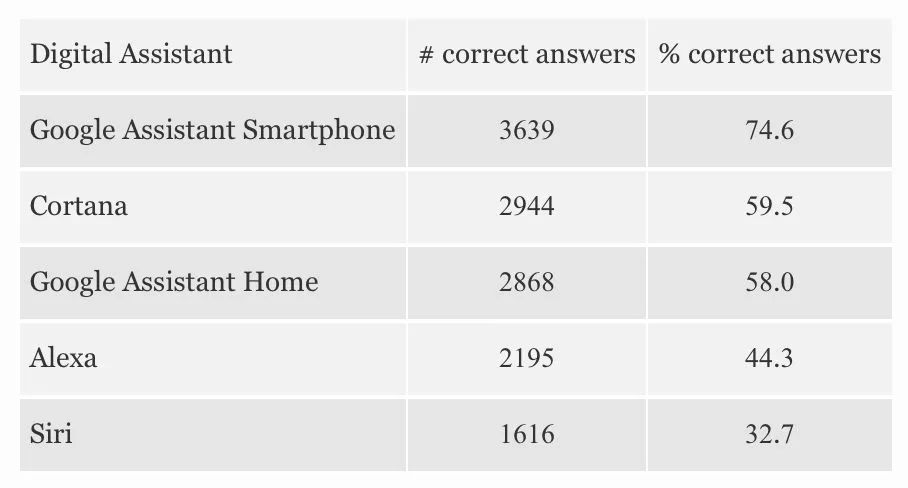 Source: Dumb And Dumber: Comparing Alexa, Siri, Cortana And The Google Assistant, Forbes, May 2018