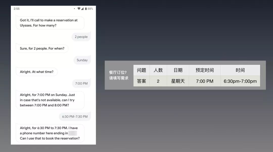 人们在想要推荐餐厅的时候,通过对话,了解他的需求(绝对不能问太多,特别是显而易见的问题,比如他在5点的时候,你问他要定几点的餐厅)