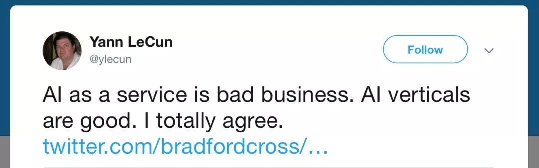 在本文中,所有与技术和产品相关的讨论,都是在强调一个观点:一个产品是由很多技术组合而成。我不希望传达错误的想法,类似“深度学习不重要”之类的;相反,我是希望每一类技术都得到正确的认识,毕竟我们离真正的人工智能还有距离,能用上的都有价值。