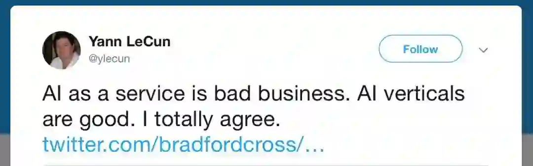 而Yann LeCun 和Hinton指的人工智能则是指的当前用来实现“人工智能效果”的技术(基于统计的机器学习)。这两位的观点是“用这种方式来实现人工智能是行不通的”。