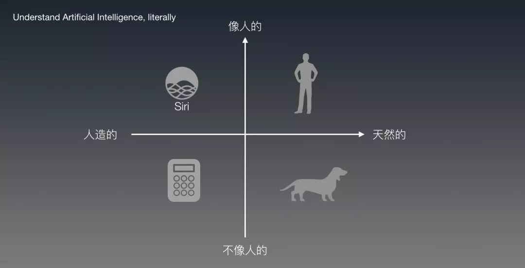 也就是说,一个手持计算器,尽管不像人,也应算是人工智能产品。但我相信大多数人都不会把计算器当成是他们所理解的人工智能。