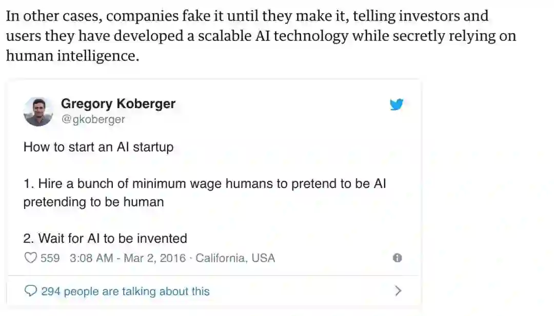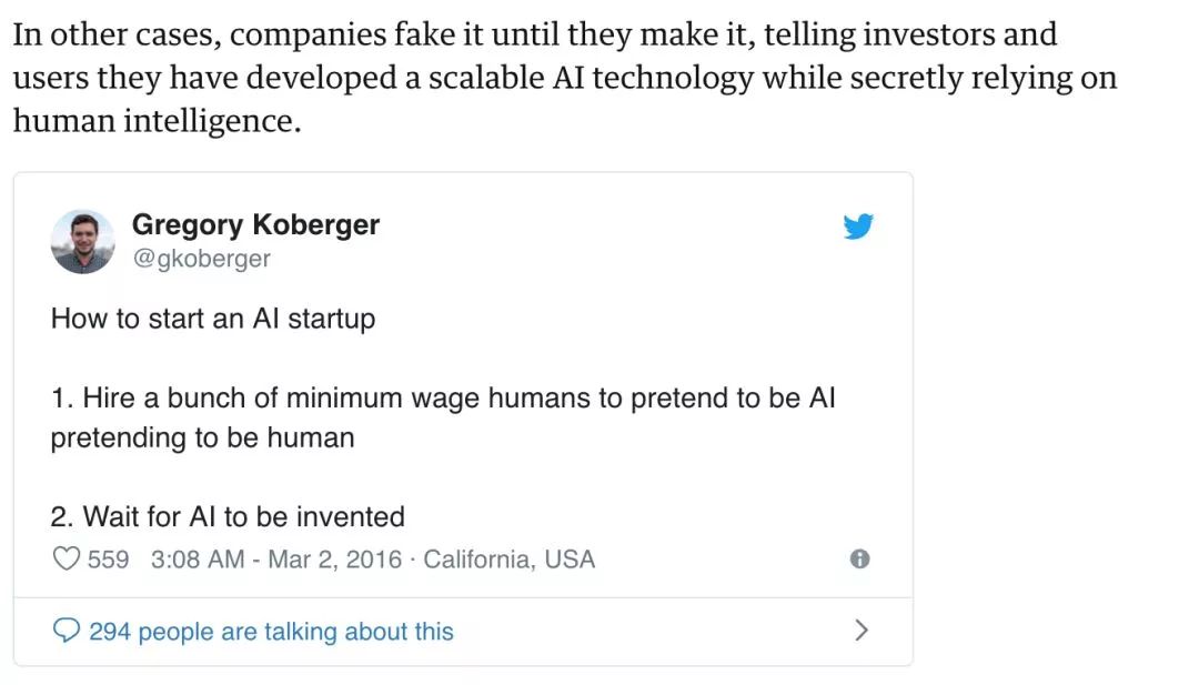 对了,说到这儿,确实现在也有:用人——来伪装成人工智能——来模拟人,为用户服务。