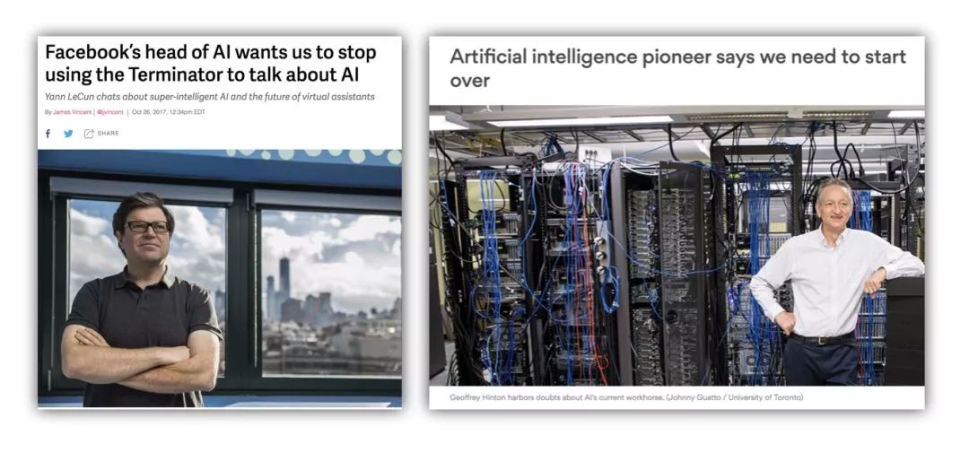而在另一边,Facebook和Google的首席科学家却在说,现在的AI都是渣渣,根本不需要担心,甚至应该推翻重做。