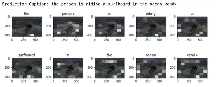 我们的目标是用一句话来描述图片, 比如「一个冲浪者正在冲浪」。 本教程中用到了基于注意力的模型,它使我们很直观地看到当文字生成时模型会关注哪些部分。