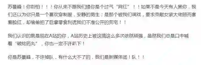 眼看着队友被撕,A站的其他运营人员坐不住了。事发12小时后,A站发出一篇回应文——《苏景锋,我们恨你!!》