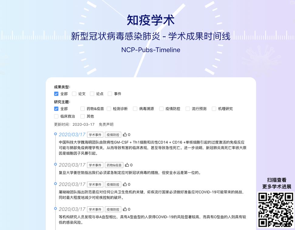 AMiner 平台利用自己学术资源库的优势推出的新冠肺炎全球研究成果时间线记录各高校和科研机构最新最全的科研成果,为方便用户阅读,本篇文章对各高校重点成果做归纳总结,更多详情可以到 “知疫学术” 产品查看(https://www.aminer.cn/ncp-pubs)。
