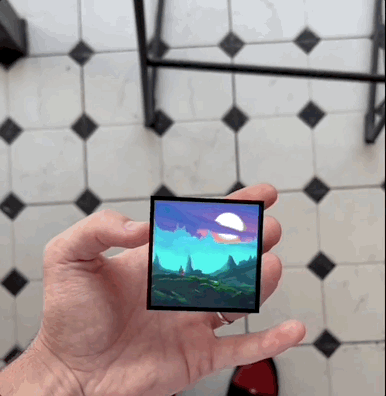 此外,还有人结合Meta旗下的AR创作工具Spark AR,利用Stable Diffusion,假装自己手握了一个方块小卡片。