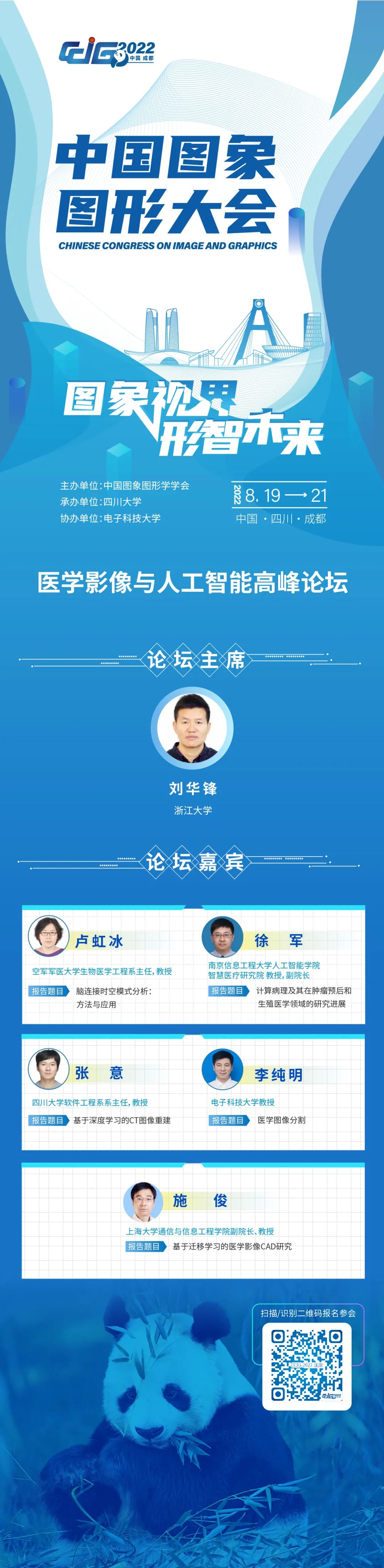 在CCIG 2022期间,会议将举办医学影像与人工智能高峰论坛,论坛信息如下: