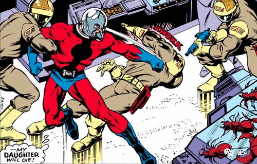 他首先确定了一点:那就是蚁人的密度始终没变,这也就意味着质量一定是随着身体一起缩小的。例如在《惊异故事》第37期中,蚁人因为质量小而被吸入吸尘器,另外他还能乘骑老鼠。