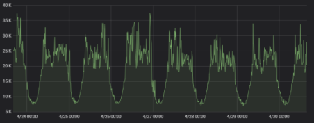 其次是高并发和峰值效应对架构的影响愈发明显,每一款产品都有其特定的用户使用时长高发期,极光也不例外。中午 12 点和晚 8 点 - 晚 11 点,这两个时间段是开发者使用极光推送能力的高峰期。这种时间段往往会产生大量的请求,后台服务往往需要同时处理比往常多达二十倍甚至更多的数据请求,因此需要后台架构能够撑起并提供相对稳定的服务。