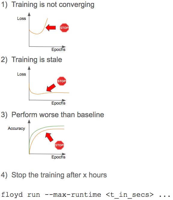 这些标准可以在照看学习过程时手动应用,或者你可以通过常见框架中提供的钩子/回调在实验中集成这些规则来做得更好: