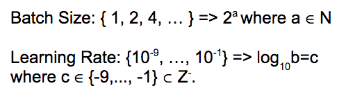 对于每个维度,定义可能的取值范围:例如 batch_size = [4,8,16,32,64,128,256 ]
