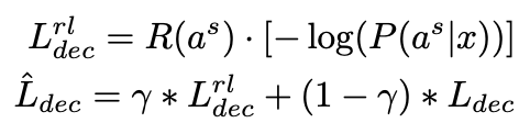 最后,由于最大化极大似然估计的目标对摘要等文本生成任务来说太过严格,可能会过度拟合,因此借鉴之前工作,我们将 ROUGE-L 作为另一个优化目标并利用强化学习对该目标进行优化,最终的学习目标是 MLE 和 ROUGE-L 的混合。