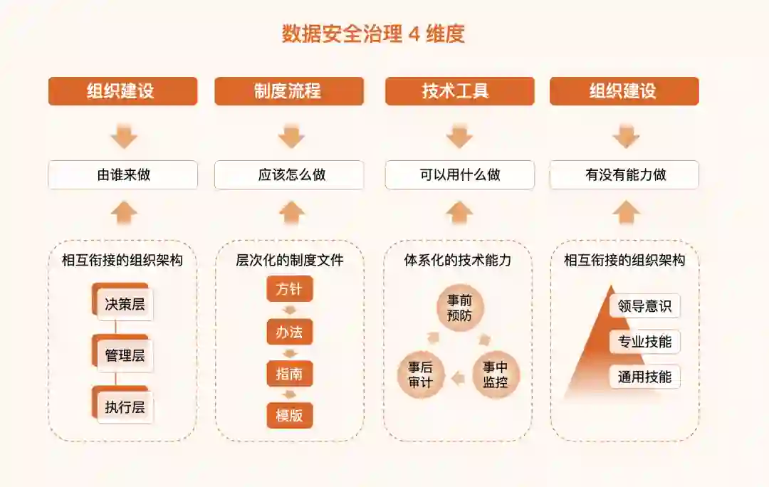 由每个个人的能力汇聚为团队能力,加上团队负责人的企业级领导意识,进而达到将能力输出,提高整个机构的数据安全能力 / 水平,从而逐步和最终能够具备“保障持续安全状态的能力”,这就是基于数据安全的团队能力演进路线。