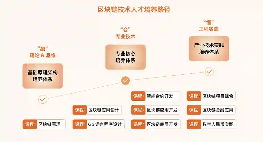 强化专业技术能力培养。建议开设《Go 语言程序设计》《智能合约开发》《区块链应用开发》《区块链底层开发》等课程。