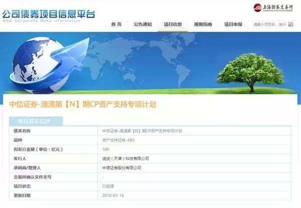 @凤凰科技【美团做打车,滴滴反击100亿砸向外卖】上海证券交易所公司债券信息平台显示,中信证券-滴滴第【N】期CP资产支持专项计划已于3月16日受理,拟发行金额100亿元,品种为资产支持证券——ABS。