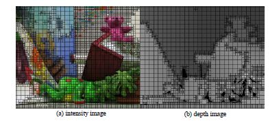 图3:大多数情况下,在强度图片位于相同四叉树块的像素点在深度图片中也位于相同四叉树块,即位于相同四叉树块的像素有相近的强度值和深度值。