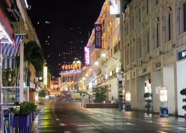 中山路步行街的建筑都是骑楼,以粉红和乳白作为主色调,有浓郁的南洋风情。