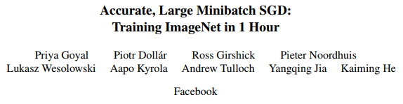 [2] Accurate, Large Minibatch SGD: Training ImageNet in 1 Hour https://arxiv.org/pdf/1706.02677.pdf