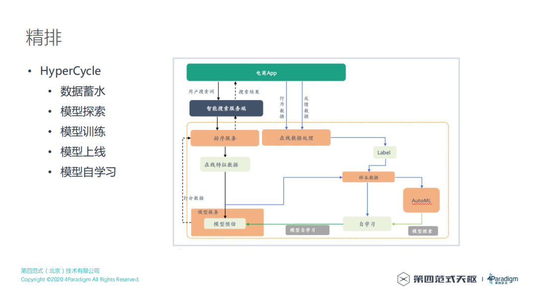 我们系统中主要使用的是自研的HyperCycle。简单来说会自动蓄水积累数据、自动探索模型、自动挖掘特征,自动训练上线,还会定期自动更新,详细信息可以参考后面石光川分享的HyperCycle。