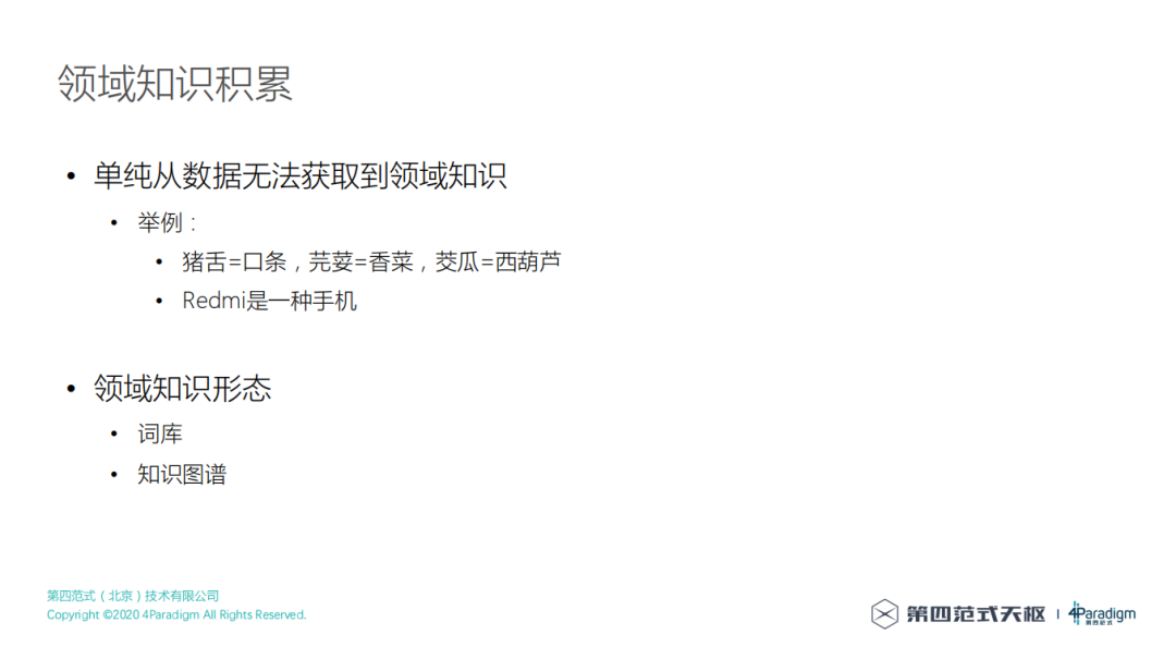 领域知识其实是不太好分析出来的,举个例子,猪舌和口条其实是一回事,茭瓜和西葫芦是一回事,这些知识,当然可以去分析,那如何分析?其实有很多现成的知识可以抓取过来利用,把它作为领域知识积累下来。这个领域知识有很多形态,最简单就是词库,也可以构建知识图谱,构建知识图谱是构建领域知识最常用的方式。