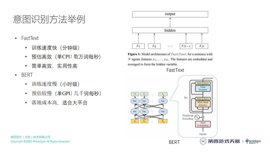 意图识别有哪些方法,意图识别的方法有很多种,因为意图识别本身用的就是分类器,分类器其实有好多种,但是经过各种对比之后,我们选择了能在线上使用的FastText,同等效果下,FastText是最快的,并且简单高效,实用性高。