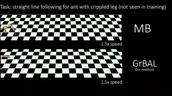 先前的工作使用的是试错适应方法(Cully et al., 2015)以及自由模型的元强化学习方法(Wang et al., 2016; Finn et al., 2017),通过一些训练,让智能体去适应。然而,BAIR 研究人员的工作是要让适应能力发挥到极致。人类的适应不需要在新设置下体验几回,这种适应是在线发生的,仅在几个时间步内(即毫秒),太快了以至于不能被注意到。