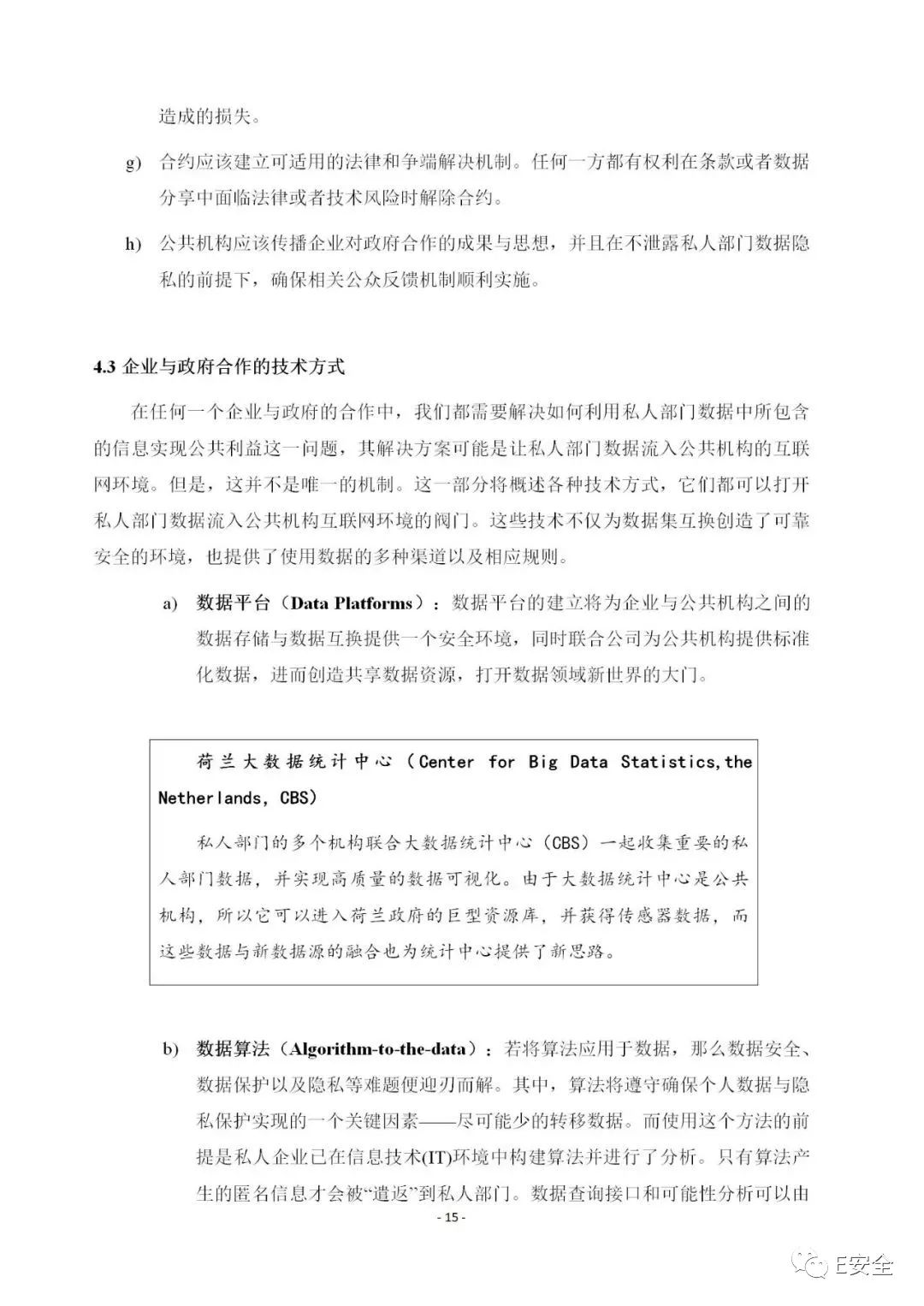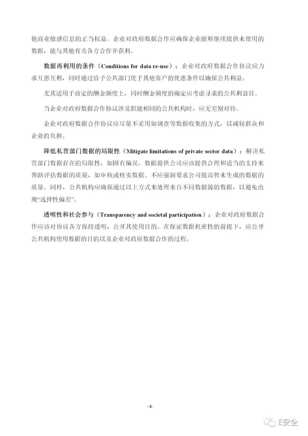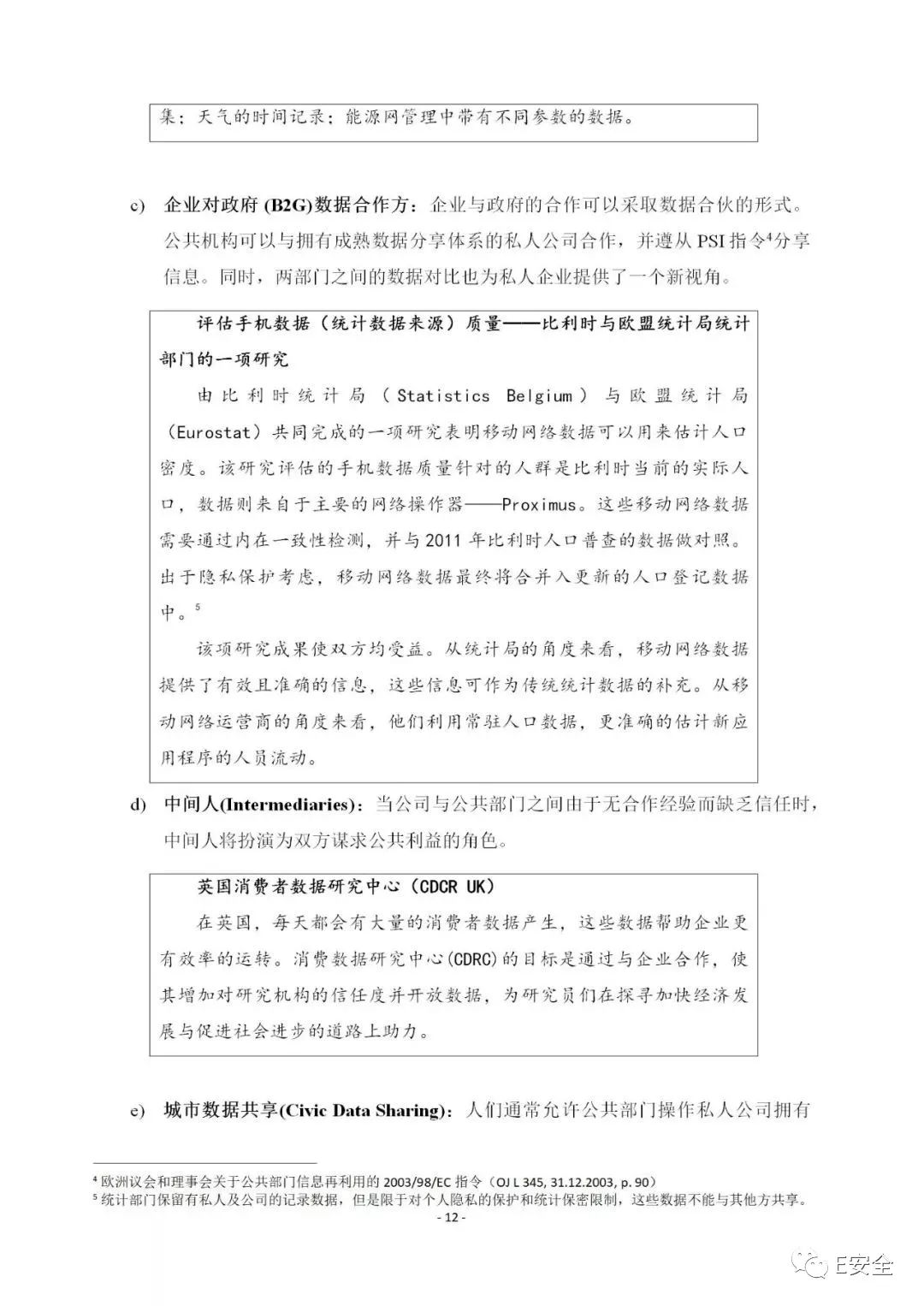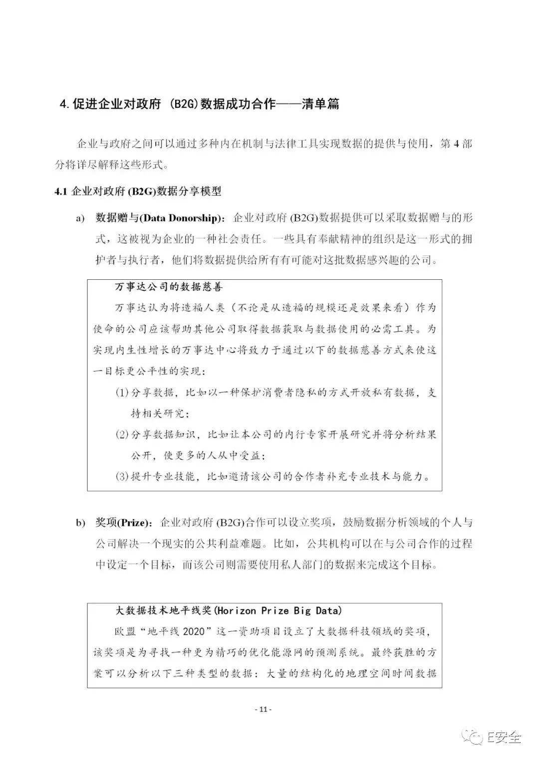 本文对企业对企业(B2B)与企业对政府(B2G)数据共享的主要原则和具体方法进行了讨论,包含概述、企业对企业(B2B)和企业对政府(B2G)数据共享的原则、企业对企业(B2B)数据共享——指南篇、促进企业对政府(B2G)数据成功合作——清单篇等四节,对我国数据流通共享有一定的借鉴意义。