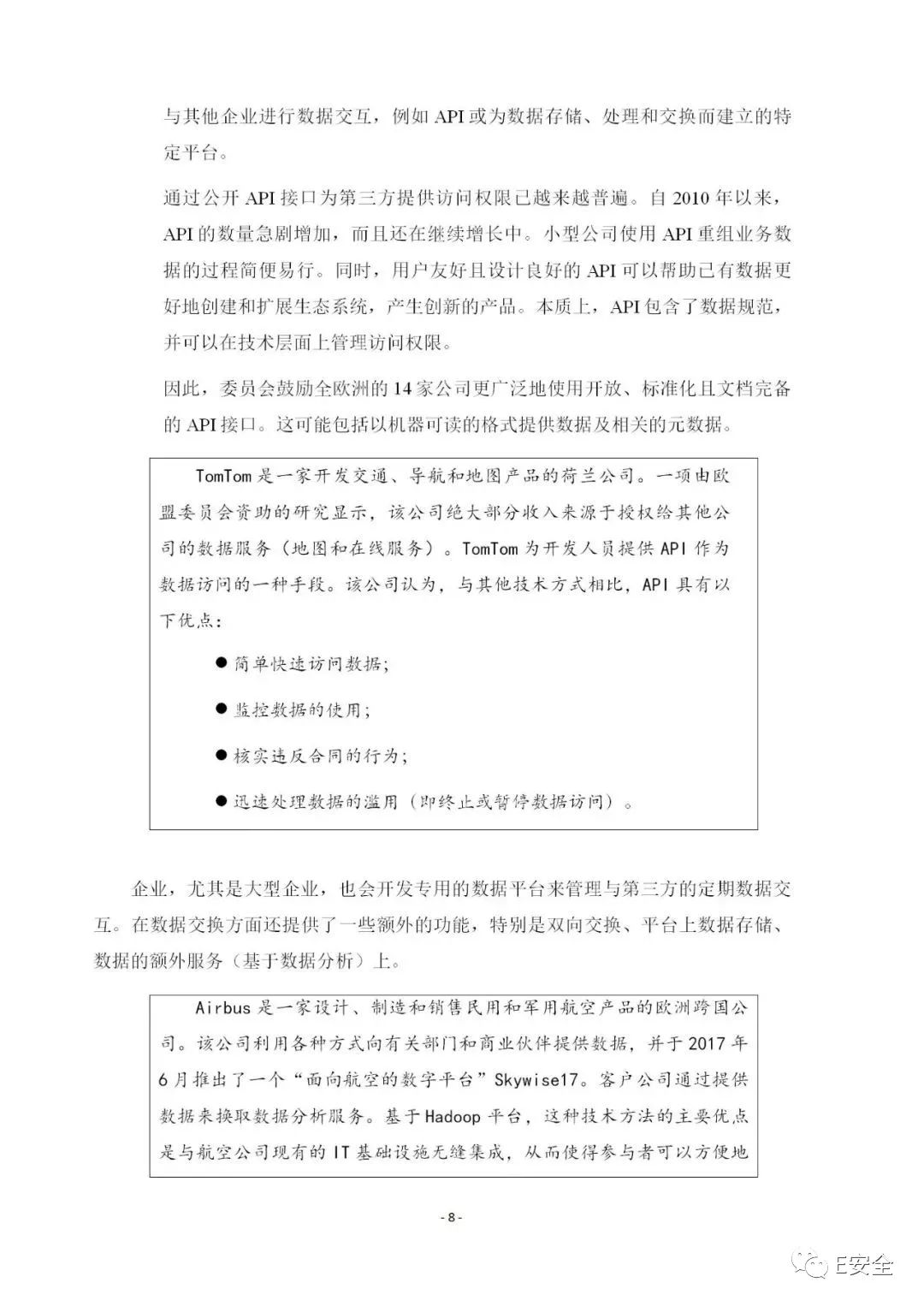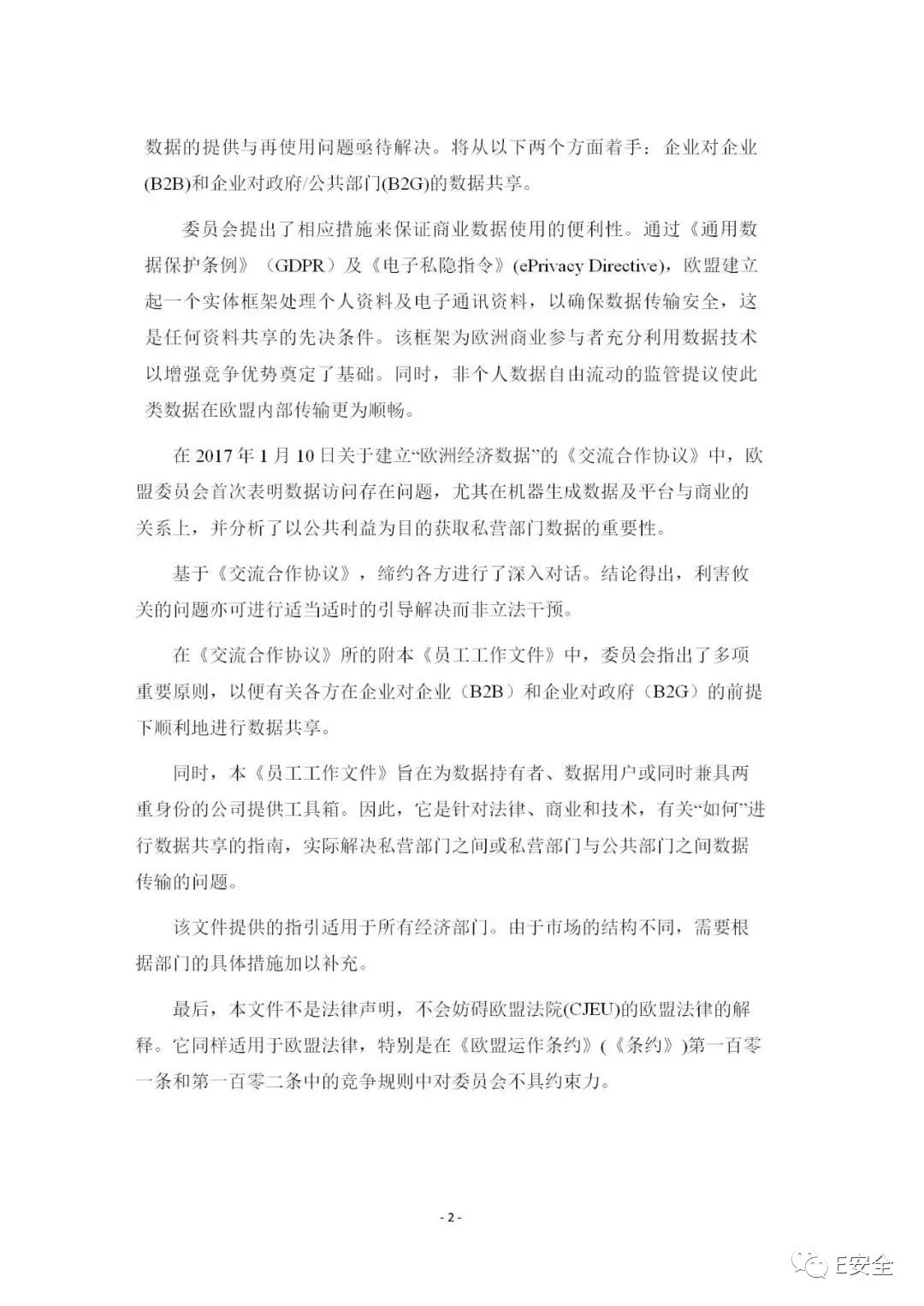 2018年4月25日,欧洲委员会通信网络内容与技术执行署(Directorate-General for Communications Networks, Content and Technology)发布了《欧洲数据经济中的私营部门数据共享指南》(Guidance on sharing private sector data in the European data economy)。