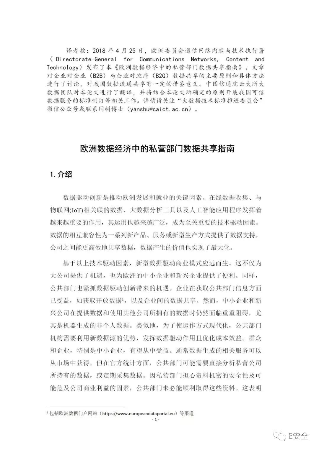小编来报:2018年4月25日,欧洲委员会通信网络内容与技术执行署(Directorate-General for Communications Networks, Content and Technology)发布了《欧洲数据经济中的私营部门数据共享指南》(Guidance on sharing private sector data in the European data economy)。中国信通院云大所大数据团队对本论文进行了翻译。