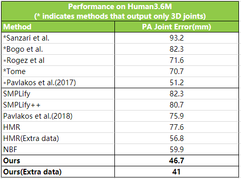 云从称,其 3D 人体重建技术全身精度误差(Surface Error)在 Surreal 上从 75.4 毫米降低到 52.7 毫米,关节精度误差(3D Joint Error)从 55.8 毫米降低到 40.1 毫米,Human3.6M 上的关节精度误差(3D Joint Error)从 59.9 毫米降低到 46.7 毫米,技术的执行速度从之前的上百毫秒降低到仅需 5 毫秒。