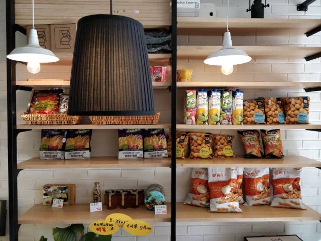 室内样张表现中规中矩,光影关系把控得当。货架包装上的字放大后清晰可见,前排两盏过亮的吊灯也没有过多影响到画面整体。