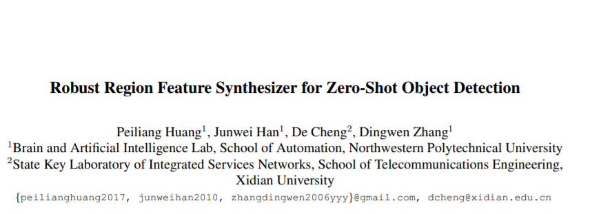黄培亮,韩军伟,程德,张鼎文. Robust Region Feature Synthesizer for Zero-Shot Object Detection, CVPR 2022.