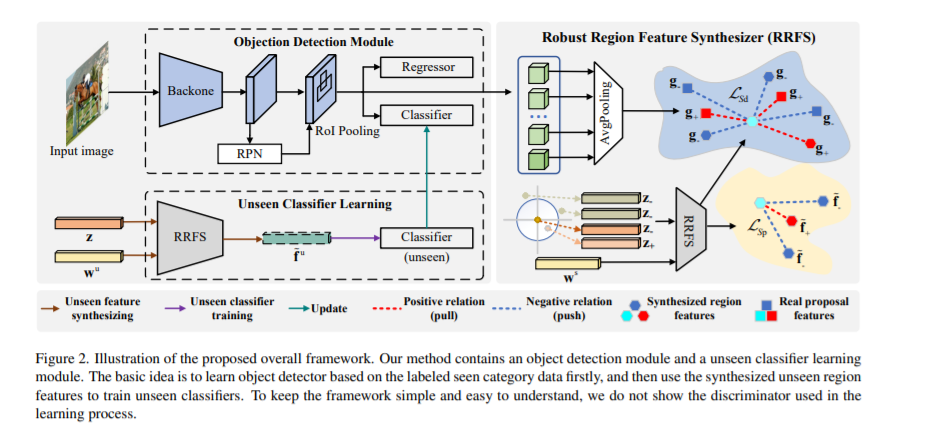 零样本目标检旨在提升模型对训练阶段不可见目标类的检测能力。传统的零样本学习模型在该任务环境下难以为未见目标生成具有足够类内多样性的区域特征,亦或是牺牲掉部分未见目标与图像背景的可区分性。在本研究中,我们充分考虑到物体检测任务的独特性,提出利用训练图像所包含的丰富的前背景区域特征来同时保持未见目标特征的类内多样性和类间可区分性,首次实现了同时针对可见目标类和不可见目标类的统一目标检测模型,并提供了首个零样本遥感目标检测的benchmark。