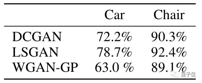 其次,研究人员还从VON和其他模型(DCGAN、LSGAN和WGAN-GP)中采集200组生成图像,并将每组图片放在Amazon MTurk的5个主题上显示。要求测试者在每组中选择更真实的结果。