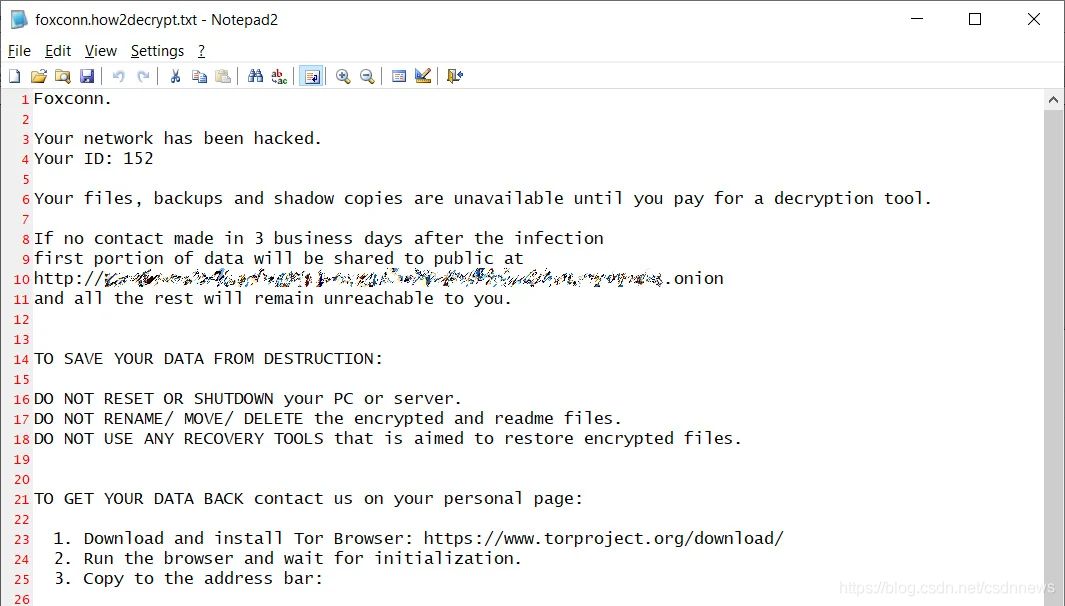 此外,消息人士分享了在攻击期间黑客在富士康服务器上创建的勒索记录,如下所示。