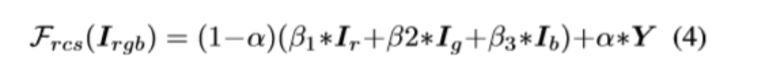 Frcs公式如上图所示,把RGB三个通道分开处理,Y表示的是RGB图转化成的灰度图。在本实验中α等于0.8,而3个β值则在-1~1之间随机。此处也定义了一个D_t判别器,来判断经过F_rcs后的输出是来自生成器生成的还是动漫图。如下所示: