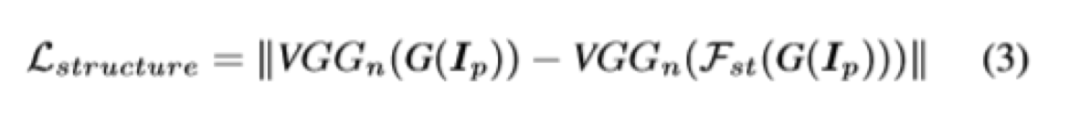 结构损失如下,其中VGG_n是使用VGG16预训练好的提取图片特征的网络,F_st为专门处理结构损失的网络。