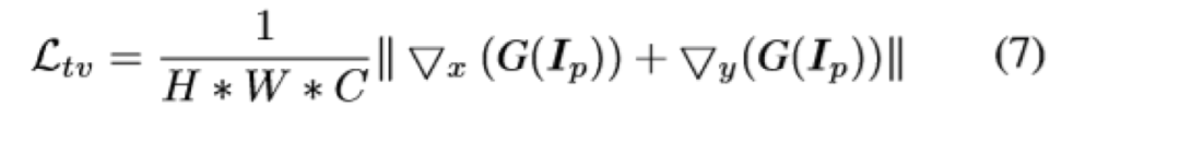 其中TV损失是为了降低总方差,可以促进生成图像的平滑,并减轻高频的噪音。公式如下:
