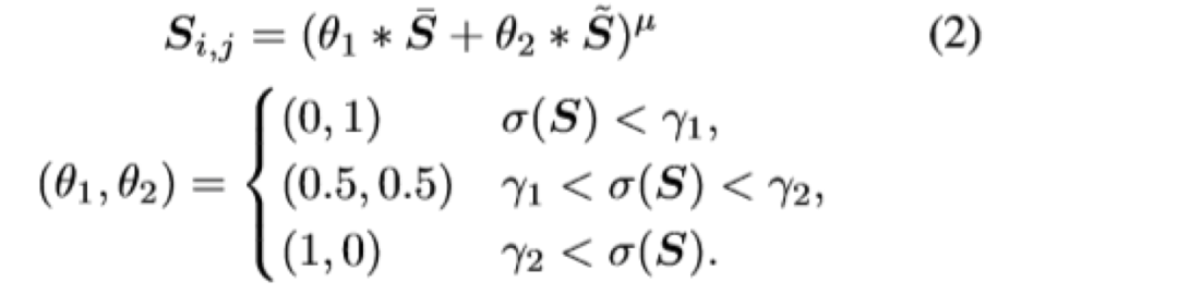 一般超像素算法会把每个区域用区域内的均值来填充,但是作者通过实验发现这样效果不好。因此作者使用了改进的算法,他把算法称之为“adaptive coloring”,其实就是一个分段函数: