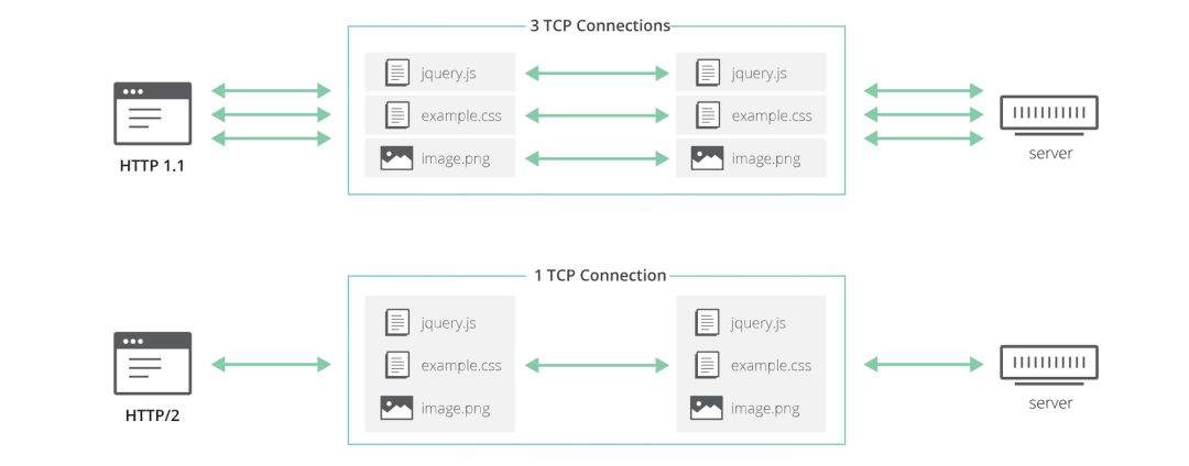 随着网络的发展,多年来网站所需资源(CSS、JavaScript 和图像等)不断增长,浏览器在获取和呈现网页时需要越来越多的并发性。但由于 HTTP/1.1 只允许客户端同时进行一次 HTTP 请求 / 响应交换,因此在网络层上获得并发能力的唯一方法是并行使用多个 TCP 连接到同一来源,代价就是牺牲了活动连接的大多数好处。尽管连接仍会在一定程度上(但程度不大)被复用,但我们又回到了起点。